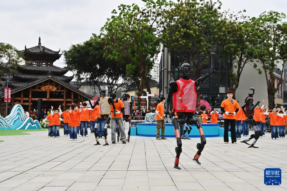 開幕式上,“科技范兒”成為關鍵詞。除了機器人“劉三姐”,在蛇年春晚上手持花絹扭秧歌“出圈”的同款人形機器人也來到廣西,脫下花棉襖,穿上壯錦馬甲,和街舞少年們共舞。