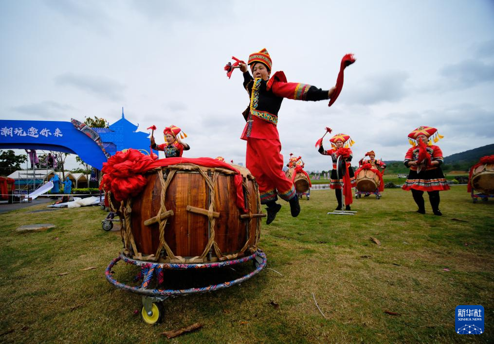 演員在廣西南寧青秀山風景區表演節目,迎接“三月三”佳節的到來(3月29日攝)。新華社記者 周華 攝