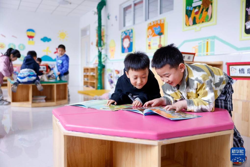 4月2日,河北省唐山市豐南區群立幼兒園小朋友在閱讀繪本。