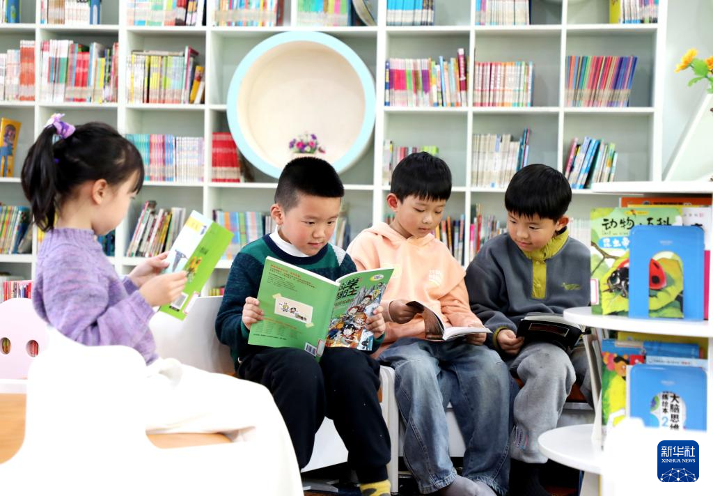 4月2日,江蘇省蘇州市金閶實驗小學校學生在校園圖書館閱讀。