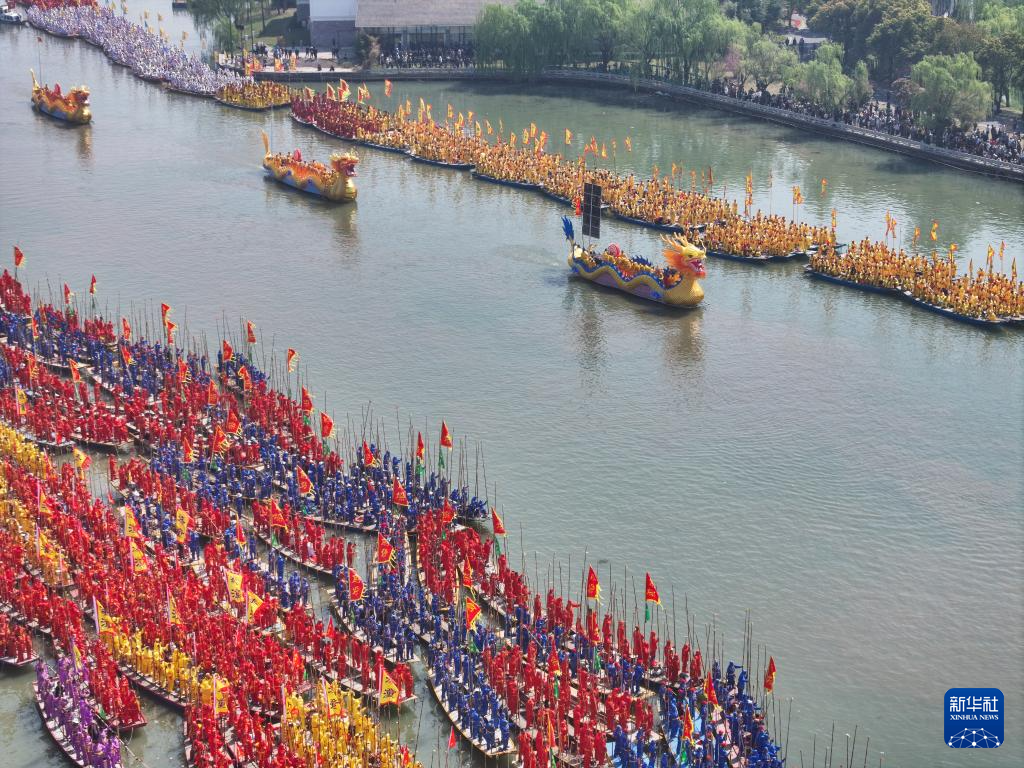 4月6日拍攝的2025泰州姜堰溱潼會船活動現場(無人機照片)。