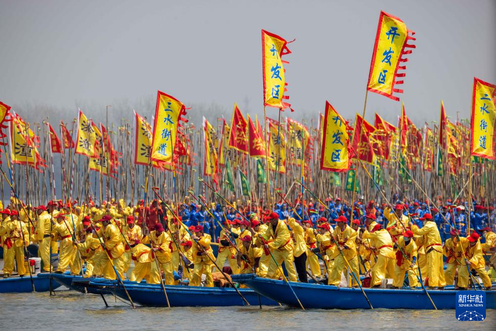 當日,2025泰州姜堰溱潼會船在江蘇省泰州市姜堰區溱湖國家濕地公園開幕,五百多條各式船只和上萬名會船選手飛篙走槳、弄潮擊浪,演繹歷久彌新的民俗畫卷。