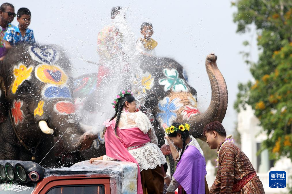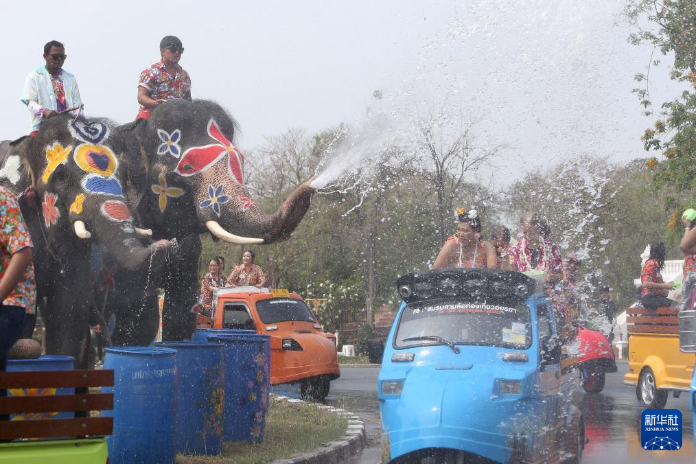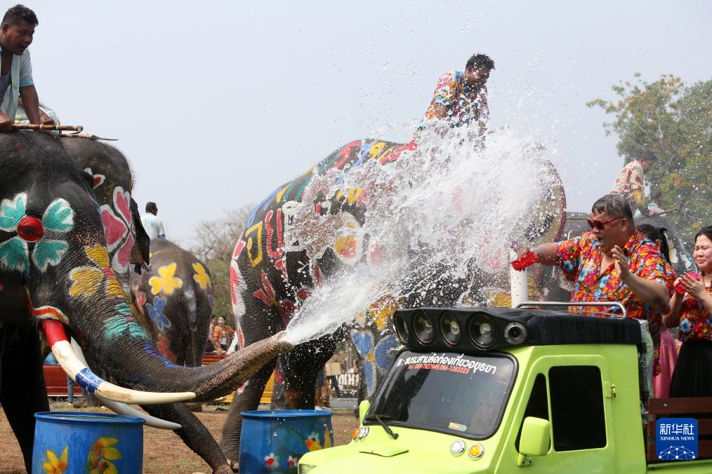 當天,人們在泰國大城府和大象相互潑水,迎接即將到來的宋干節。每年4月13日至15日是泰國傳統新年宋干節,也稱潑水節,人們以互相潑水的方式表達迎新祝福。