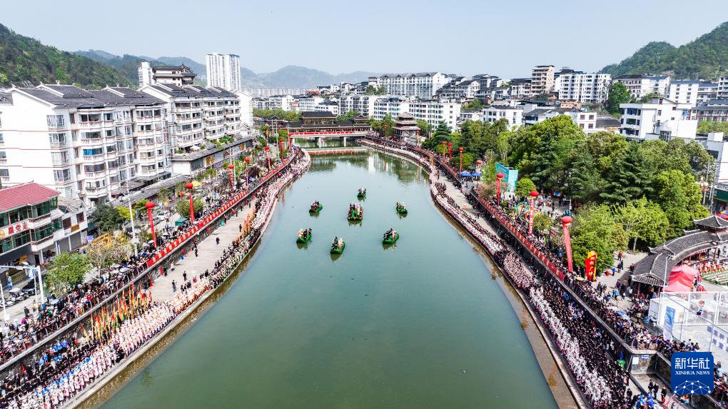 4月13日,當地群眾參加苗歌對唱活動(無人機照片)。