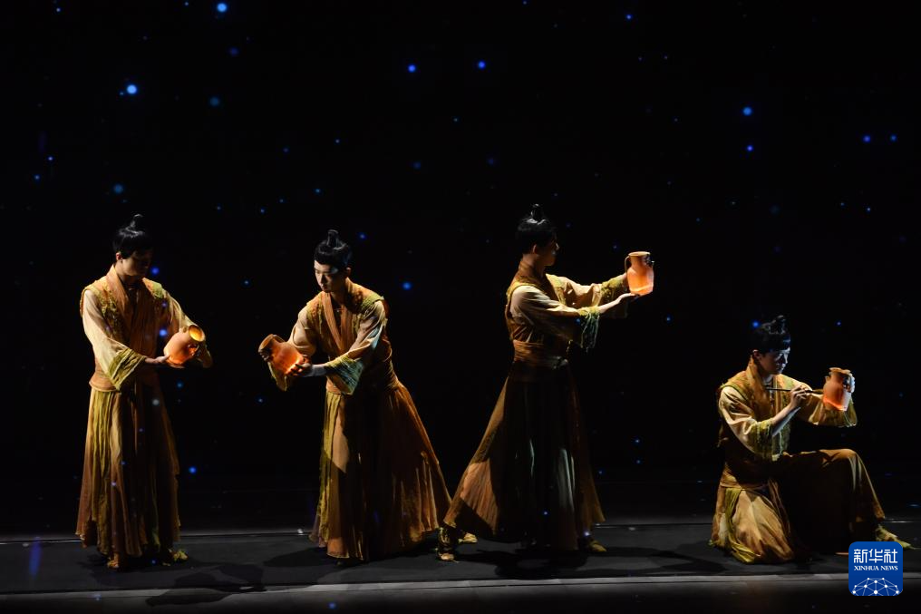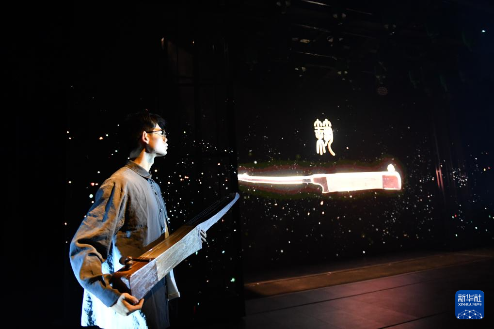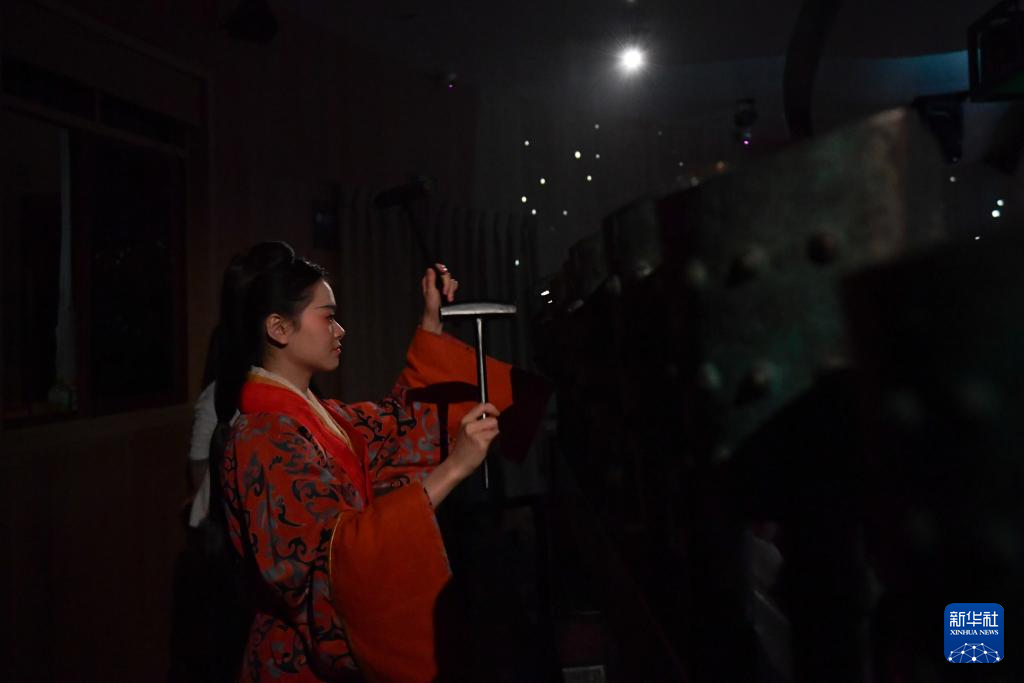 4月12日,演員在舞臺劇《尋長沙》中演奏青銅鐃。