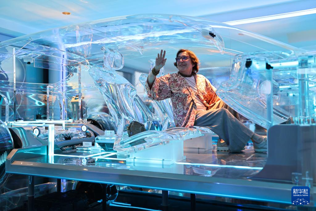 4月11日,在意大利米蘭,參觀者體驗比亞迪旗下中國汽車品牌騰勢推出的智能豪華旗艦車型Z9GT。
