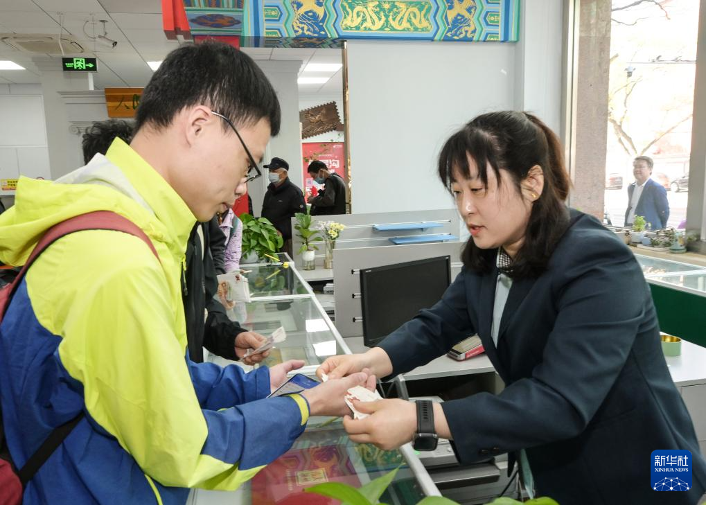 4月15日,在北京市西城區集郵營業廳,郵迷們排隊選購《全民國家安全教育日10周年》紀念郵票和相關郵品。