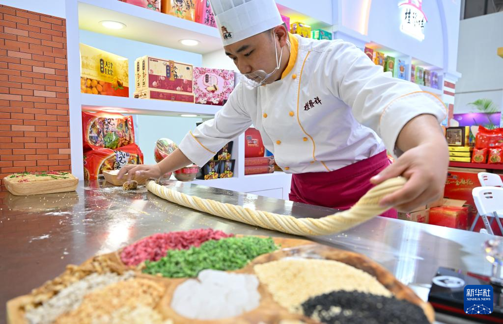 4月14日,廚師在消博會天津館制作桂發祥十八街麻花。桂發祥十八街麻花制作技藝是國家級非物質文化遺產。
