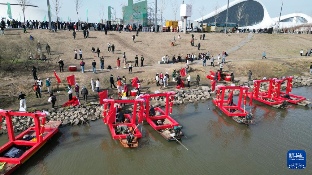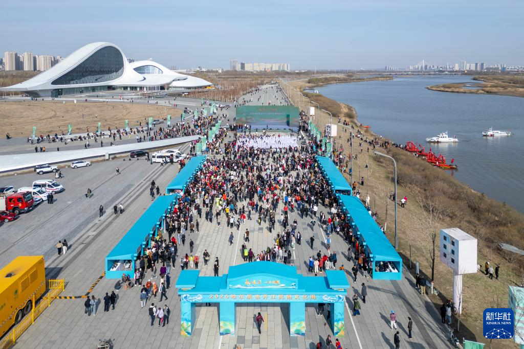 這是4月16日拍攝的2025哈爾濱市開江民俗文化周啟動儀式現場(無人機照片)。