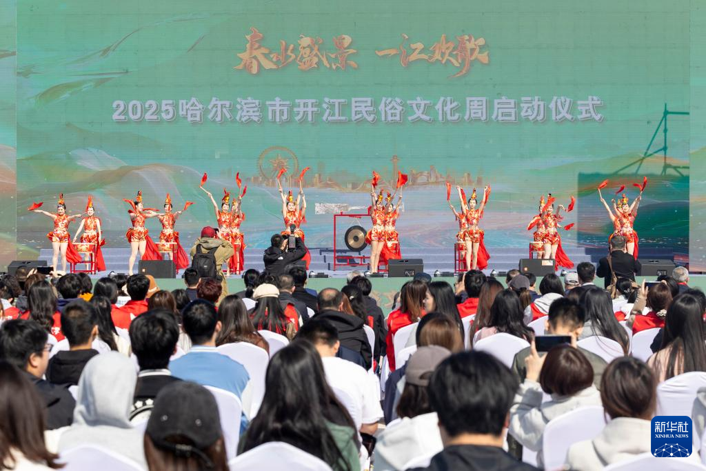 4月16日,演職人員在2025哈爾濱市開江民俗文化周啟動儀式現場表演。