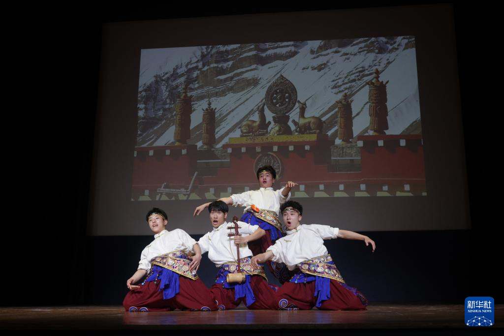 4月14日,在斯洛文尼亞皮蘭市,演員表演藏族舞蹈《少年弦歌》。