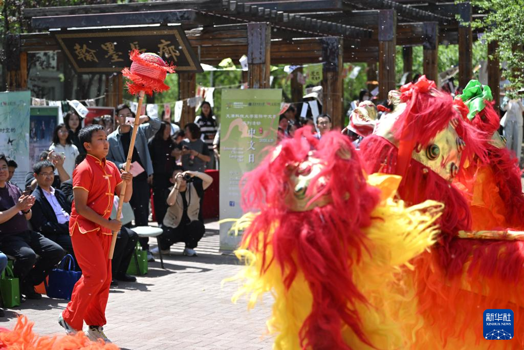4月17日,在天津科技大學,柳林小學學生在慶祝活動上表演舞獅節目。