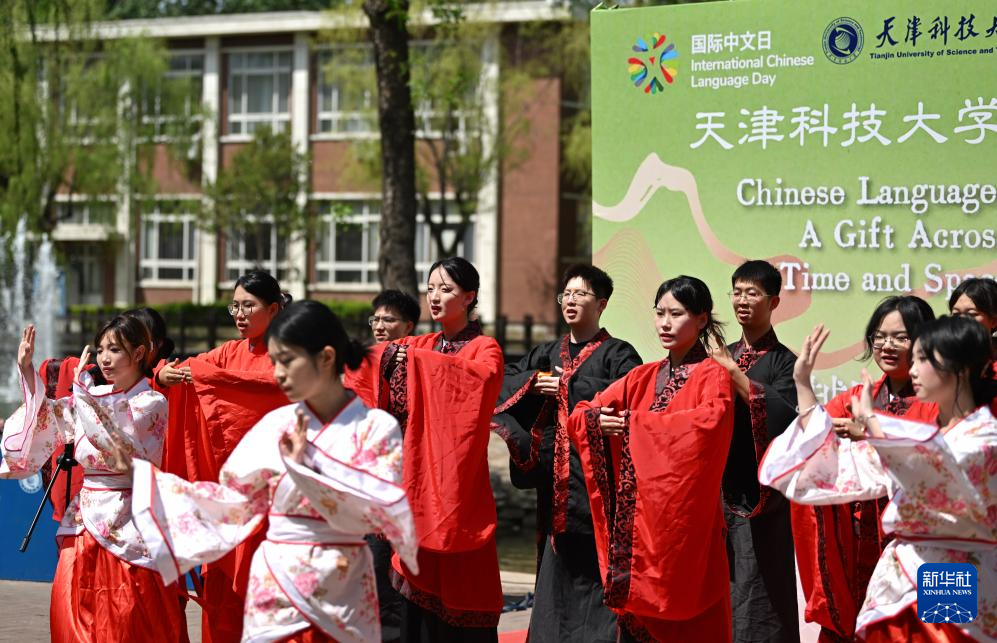 當日,天津科技大學舉辦2025年“國際中文日”慶祝活動,通過文藝演出、非遺體驗、民俗游園會等形式,吸引中外師生參加,一起感受中國傳統文化魅力。