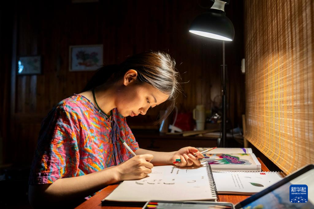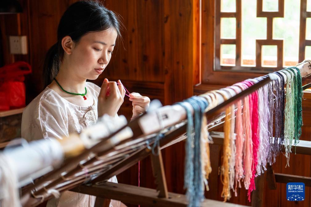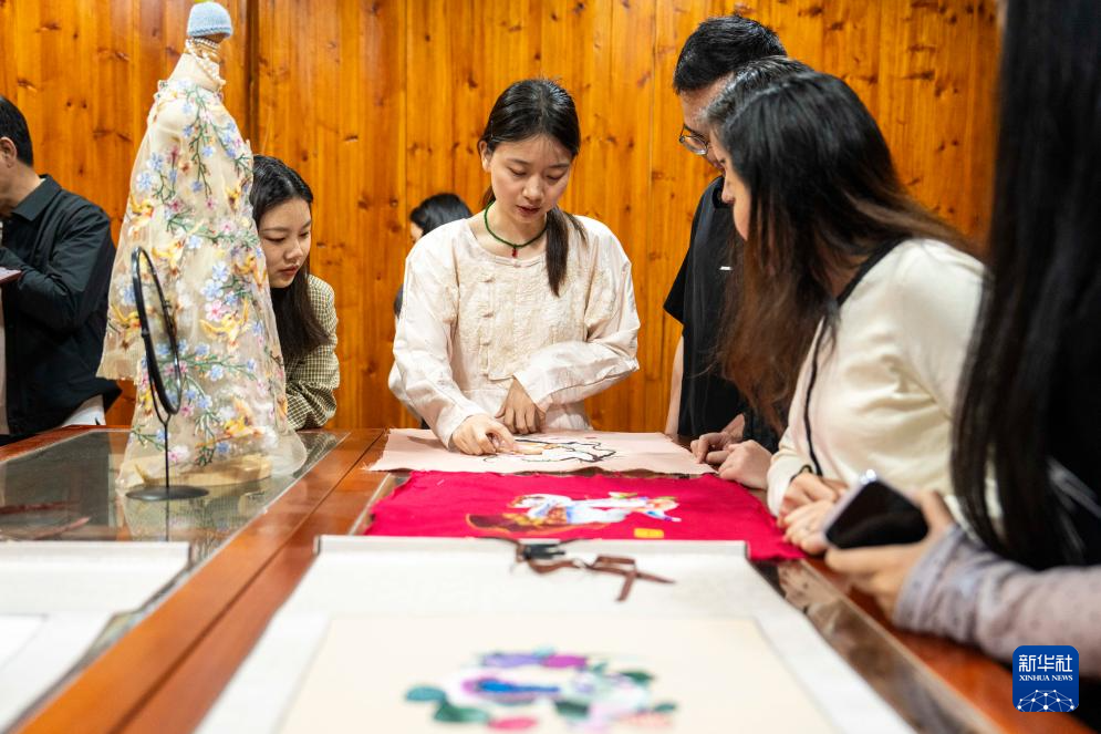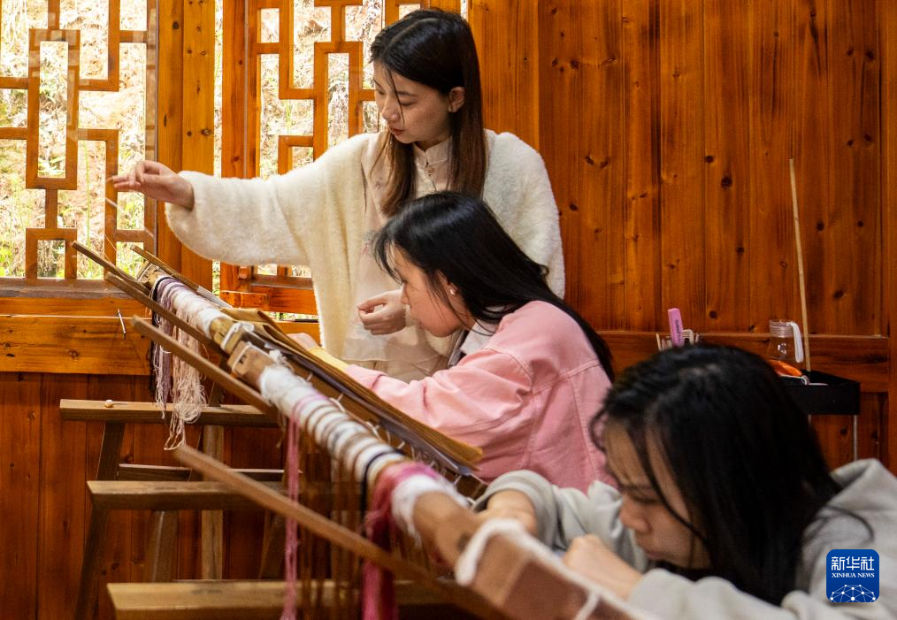 繡莊通過開展非遺進校園、刺繡展演、刺繡體驗等活動,讓越來越多的人了解桃源刺繡的魅力。肖瑤還不定期舉辦刺繡培訓班,免費向村民傳授刺繡技藝,為繡莊周邊的婦女、返鄉學生提供工作崗位,帶動村民在家門口就業。為了給桃源刺繡贏得更廣闊的生存空間,肖瑤帶領團隊開發文創產品,制作耳環、胸針、項鏈等飾品,把桃源刺繡帶入大眾視野,用青春煥新家鄉非遺。