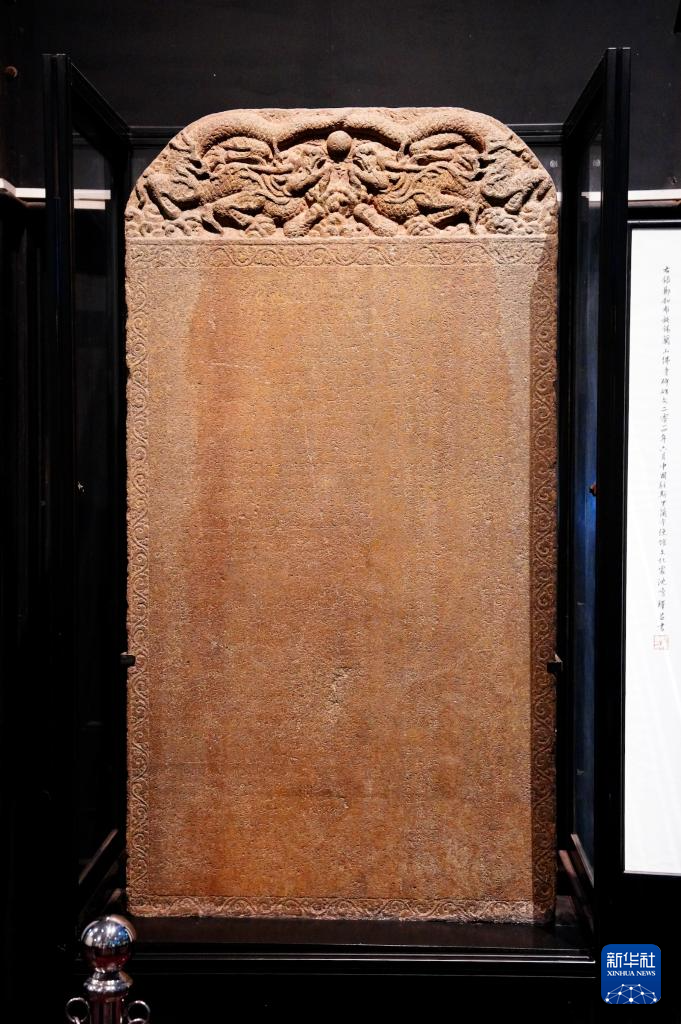 4月17日,鄭和遺存《布施錫蘭山佛寺碑》(中)在斯里蘭卡科倫坡國家博物館主展廳展出。