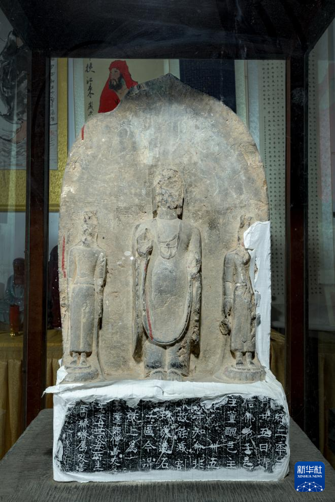 這是位于少林寺的《一佛二菩薩造像》碑正面(資料圖片)。