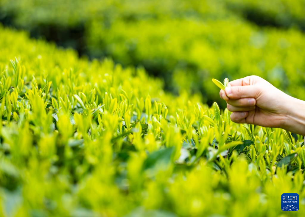 4月4日,湖北省宜昌市秭歸縣九畹溪鎮峽口村茶農在采春茶。