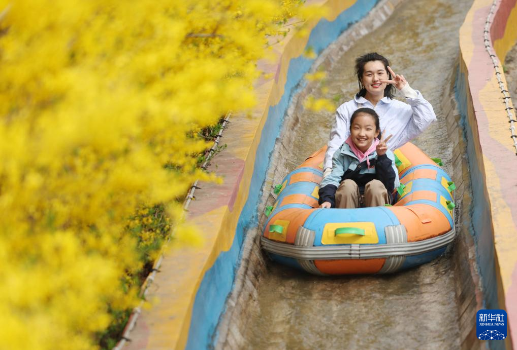 4月4日,游客在山東省臨沂市沂南縣銅井鎮竹泉村體驗漂流。