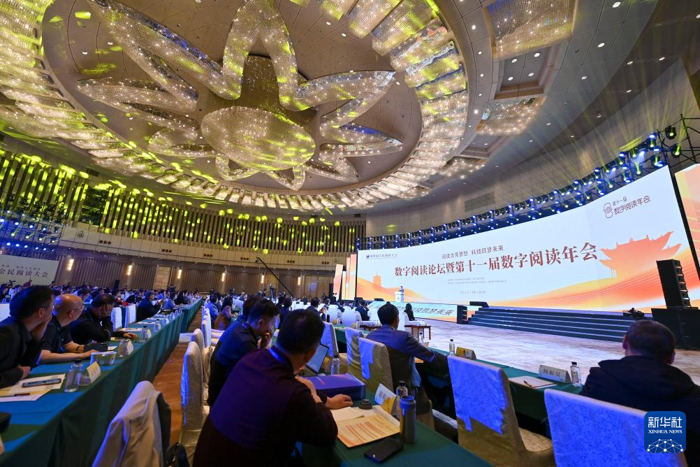 這是4月23日在太原拍攝的第四屆全民閱讀大會數字閱讀論壇暨第十一屆數字閱讀年會現場。