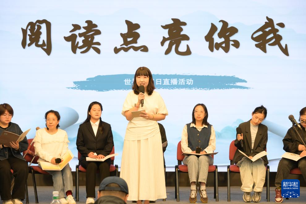 4月23日在位于北京的中國盲文圖書館拍攝的“閱讀點亮你我”世界讀書日直播活動現場。