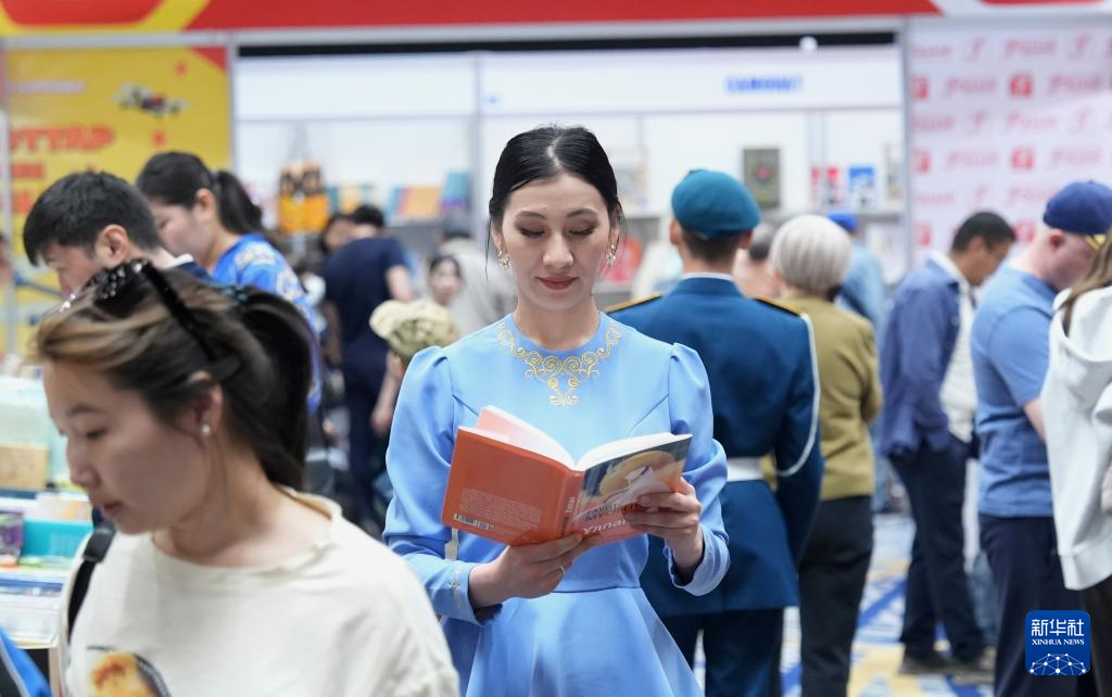 4月26日,人們在哈薩克斯坦首都阿斯塔納舉行的歐亞國際書展上閱讀圖書。