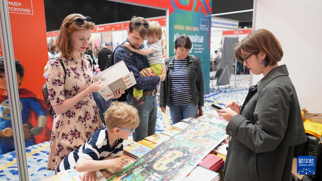 4月26日,中國參展商在哈薩克斯坦首都阿斯塔納舉行的歐亞國際書展上向讀者介紹圖書。