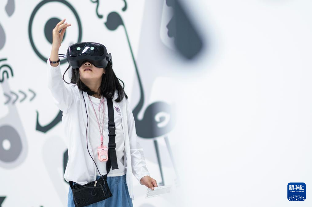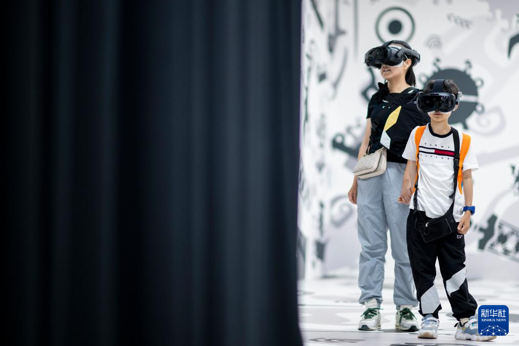 4月29日,一名小朋友使用VR設備體驗《穿越青銅紀》。