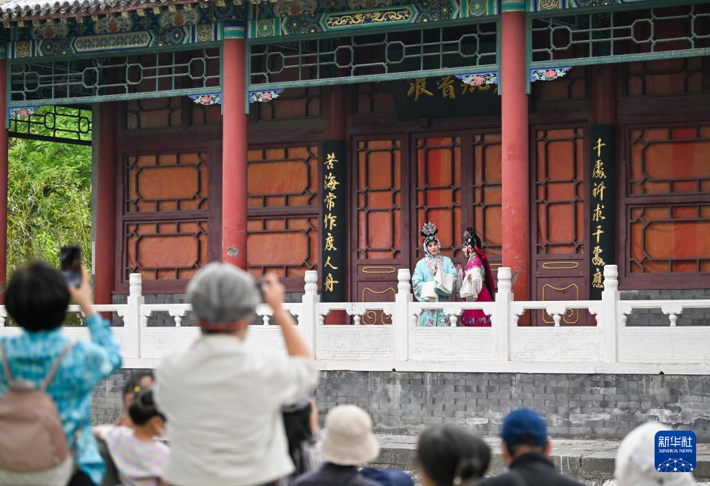 5月5日,觀眾在天津人民公園欣賞京劇《西廂記》。