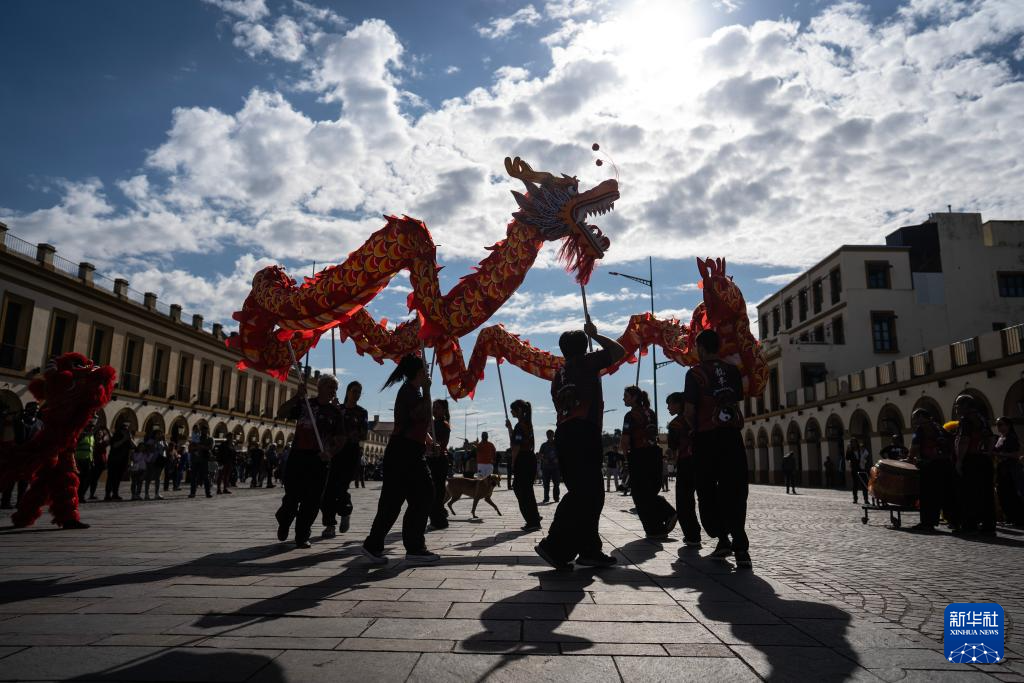 5月4日,人們在阿根廷盧漢舉行的“中國在盧漢”文化節上表演舞龍。