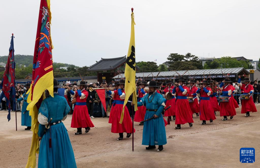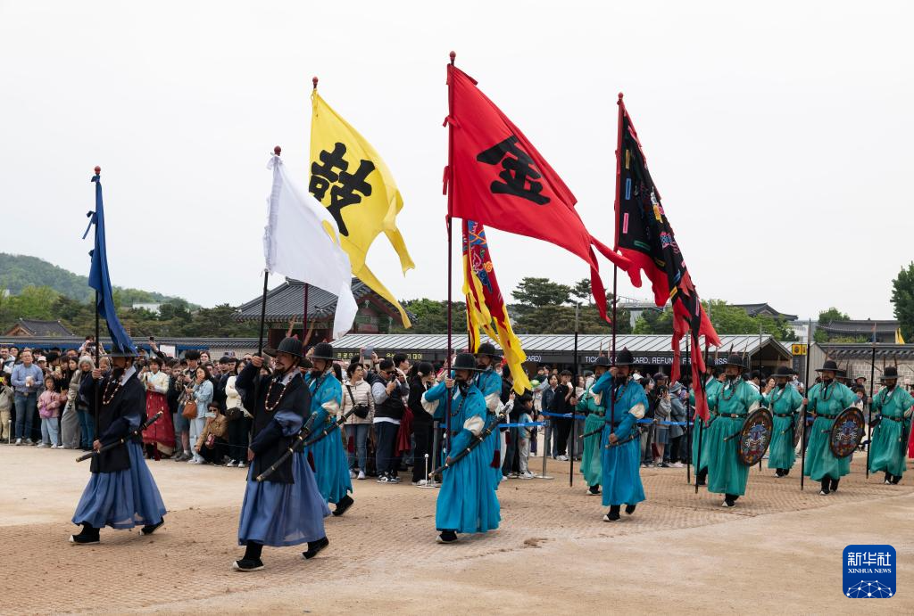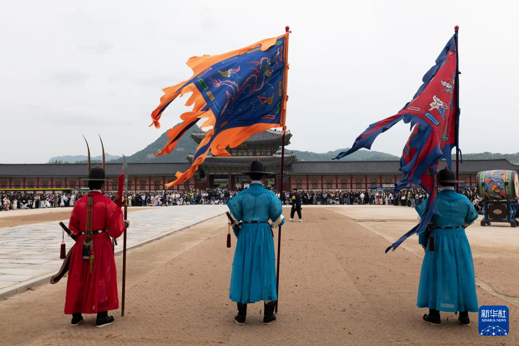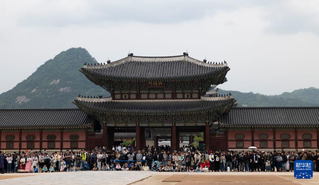 5月5日,游客在韓國首爾的景福宮觀看文化表演。