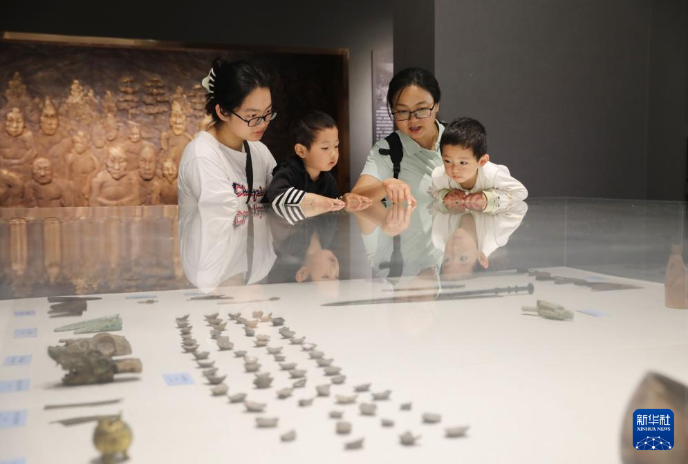 5月3日,游客在河北省邯鄲市博物館參觀。