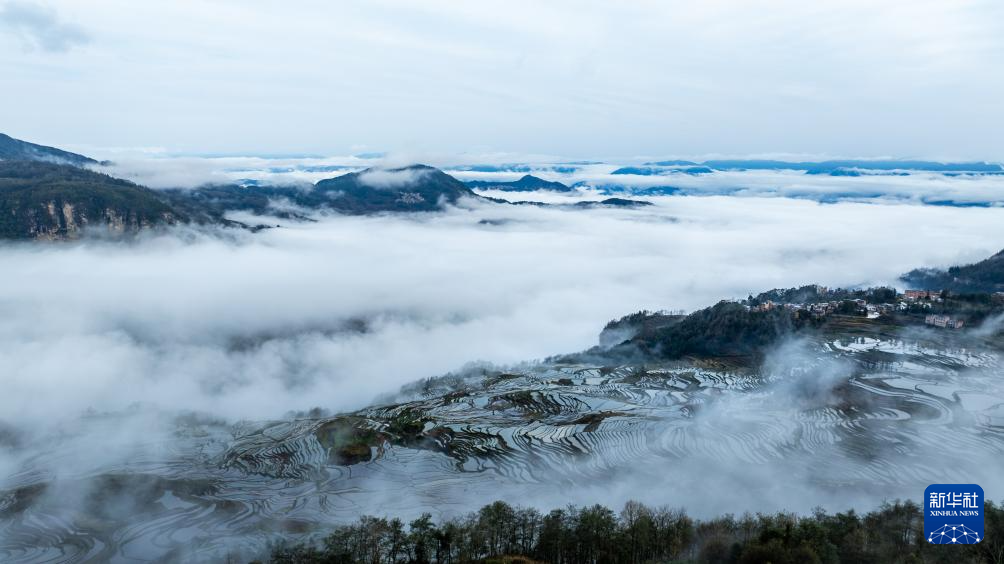 這是2月26日在云南省元陽縣拍攝的哈尼梯田風光(無人機照片)。