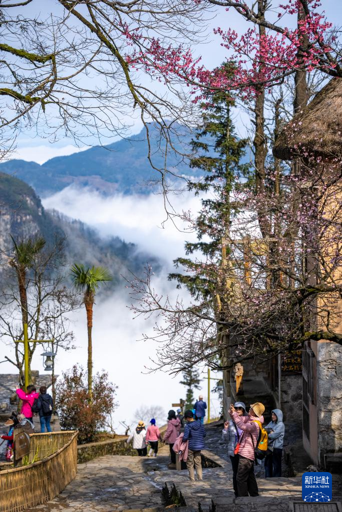 2月26日,游客在云南省元陽縣阿者科村觀光游覽。