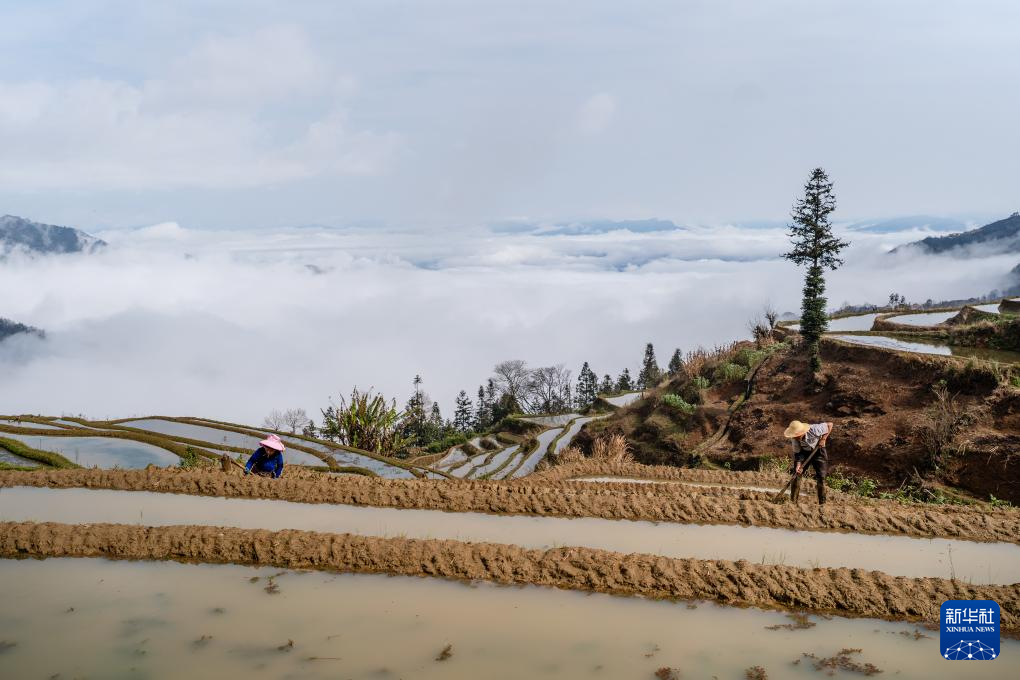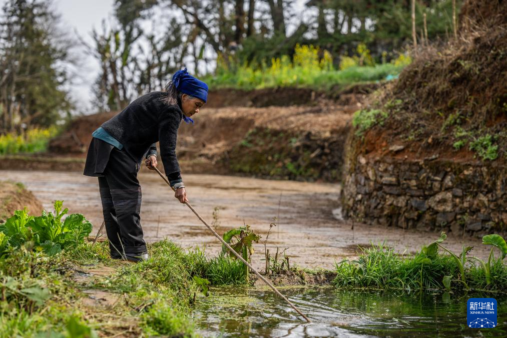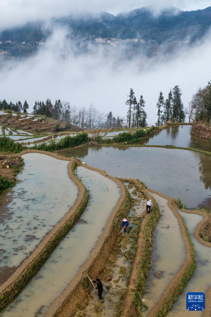 2月26日,村民在云南省元陽縣阿者科村修筑田埂。