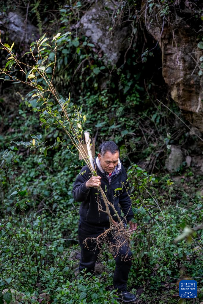 2月27日,在云南省元陽縣阿者科村,護林員楊正有上山植樹。