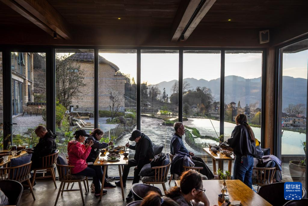 2月27日,在云南省元陽縣阿者科村,游客在村民開的民宿餐廳吃晚餐。
