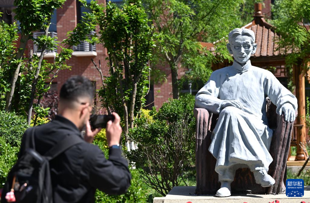 4月24日,吳瑞龍在天津市東麗區金橋養老中心(馬三立老人院)用手機拍攝馬三立的雕像。