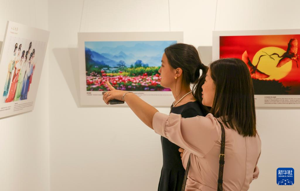 5月9日,在摩洛哥首都拉巴特舉行的“茶和天下·雅集”暨“江西風景獨好”摩洛哥“江西日”活動現場,來賓參觀“如畫江西 風景獨好”圖片展。