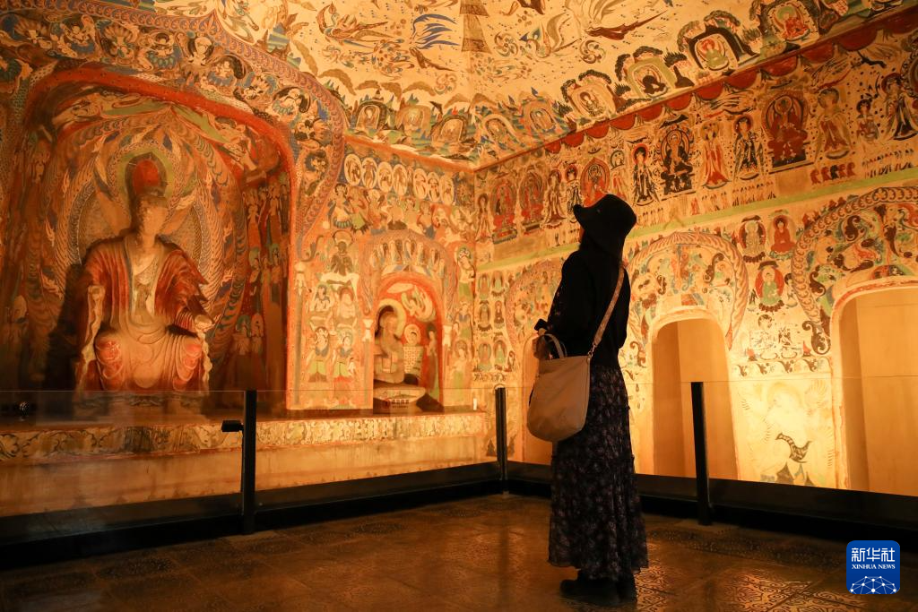 5月10日,游客在敦煌石窟文物保護研究陳列中心參觀。