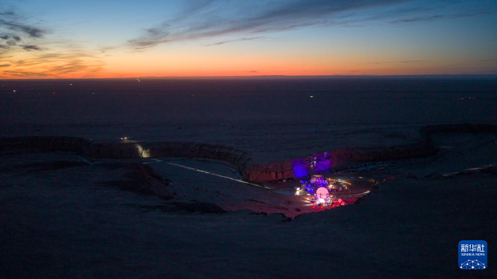 這是5月8日在敦煌市黨河大峽谷拍攝的夏日音樂派對(無人機照片)。