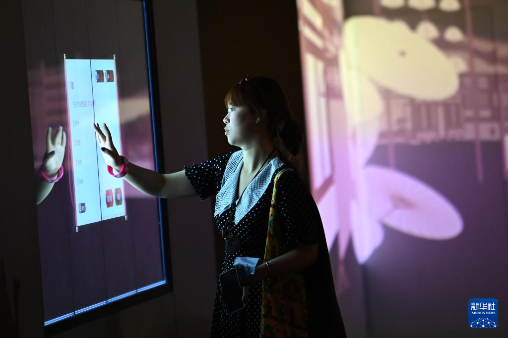 5月12日,游客在改擴建后的西安碑林博物館北區場館進行互動體驗。