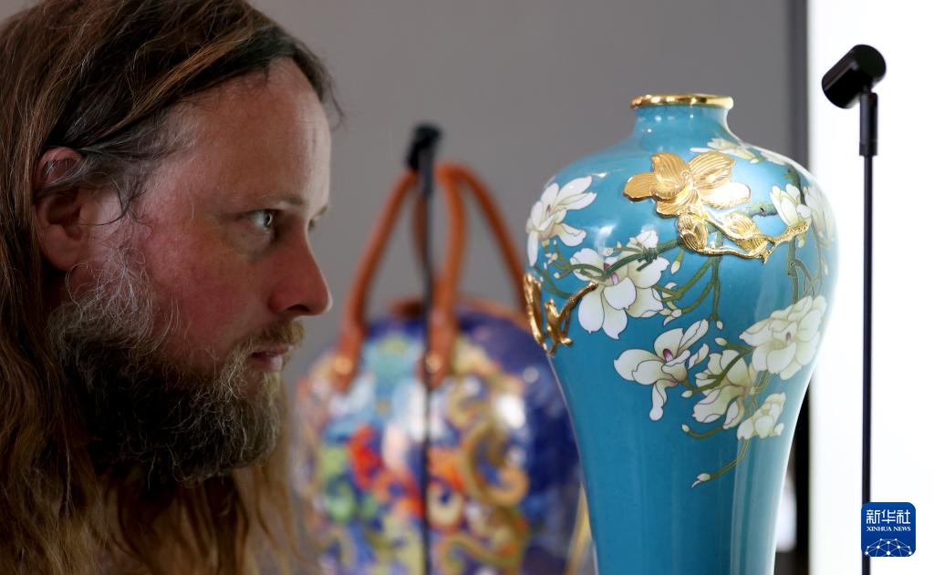 5月12日,在英國倫敦,倫敦大學亞非學院亞洲藝術策展講師戴維·弗朗西斯在倫敦工藝周中國國家館開幕活動上參觀。