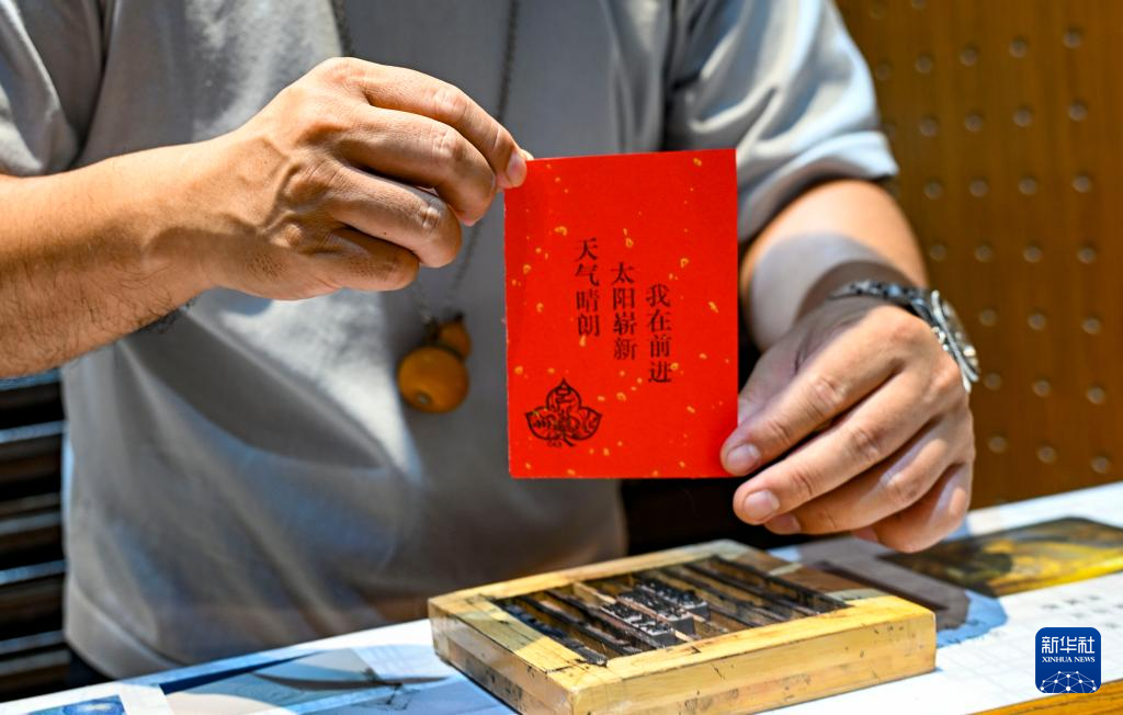 永慶坊一家活字印刷店店主賴朝陽展示自己的活字印刷作品(5月13日攝)。