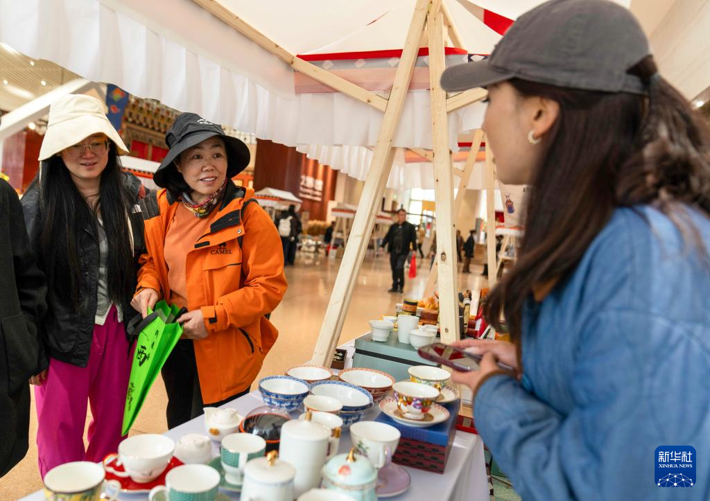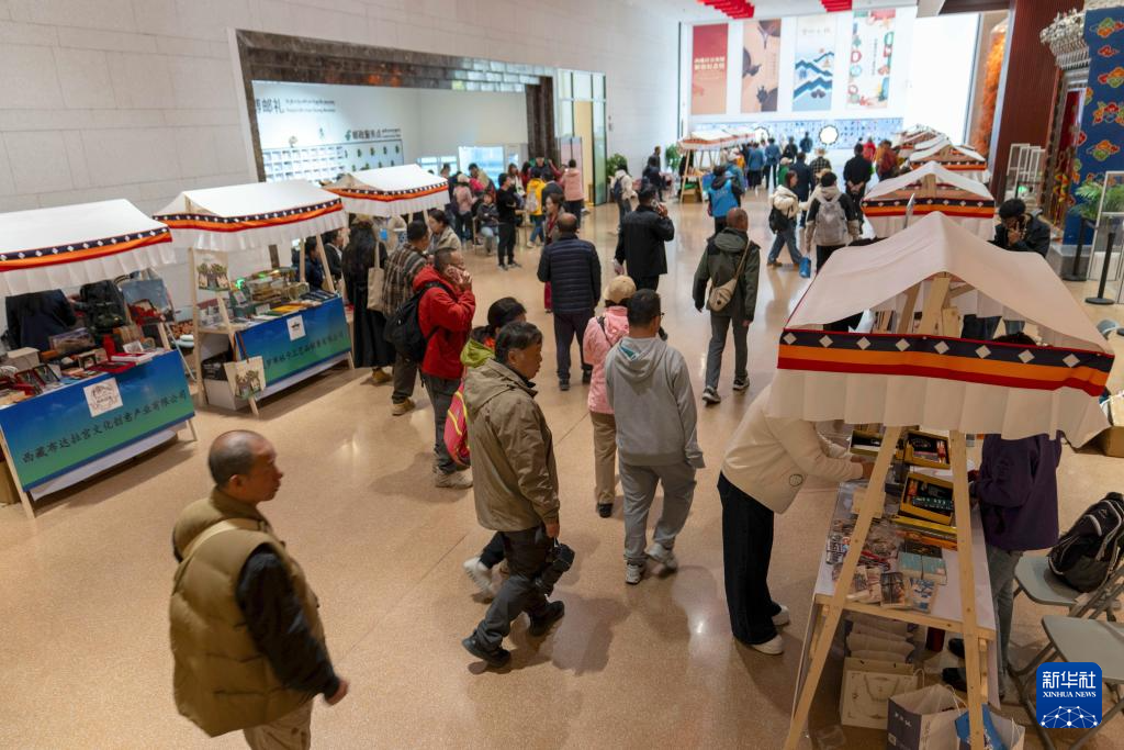 5月18日,觀眾在西藏博物館舉行的文創集市現場選購文創產品。