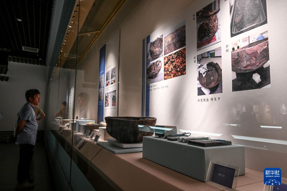 5月18日,人們在位于寧夏銀川的寧夏博物館參觀“匠心復華”文物保護修復成果展。