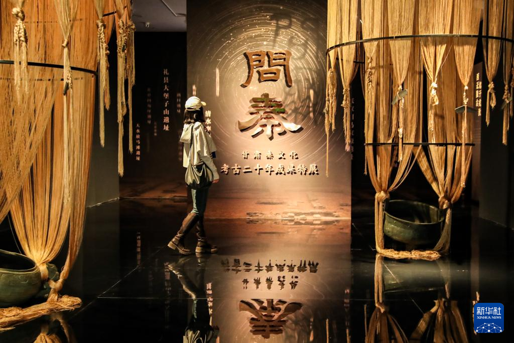 5月18日,在位于甘肅省蘭州市的甘肅簡牘博物館,觀眾在參觀“問秦——甘肅秦文化考古二十年成果特展”。