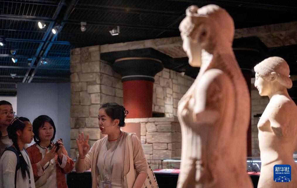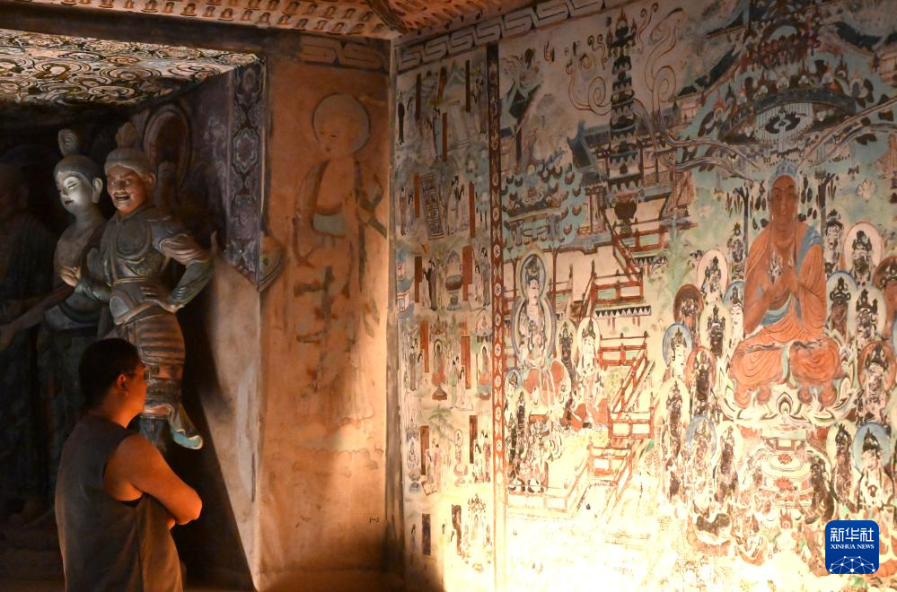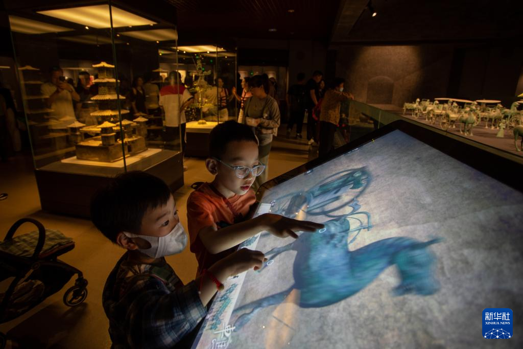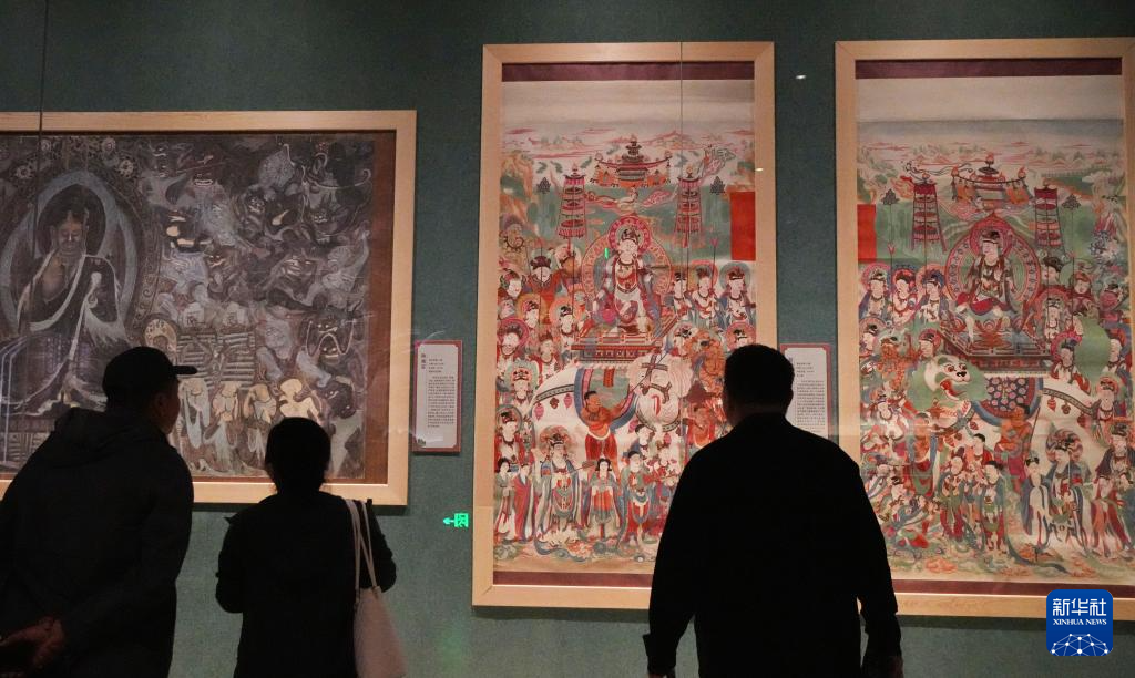 5月18日,游客在甘肅省敦煌市博物館參觀。