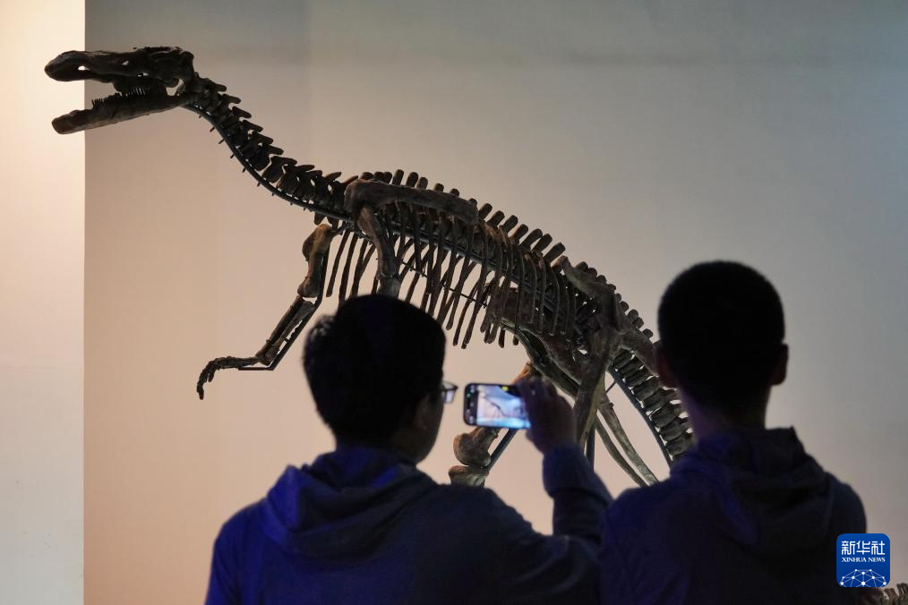5月18日,在上海自然博物館舉行的“龍吟九州·中國恐龍大展”展品開箱儀式上,參觀者觀看、拍攝恐龍化石。