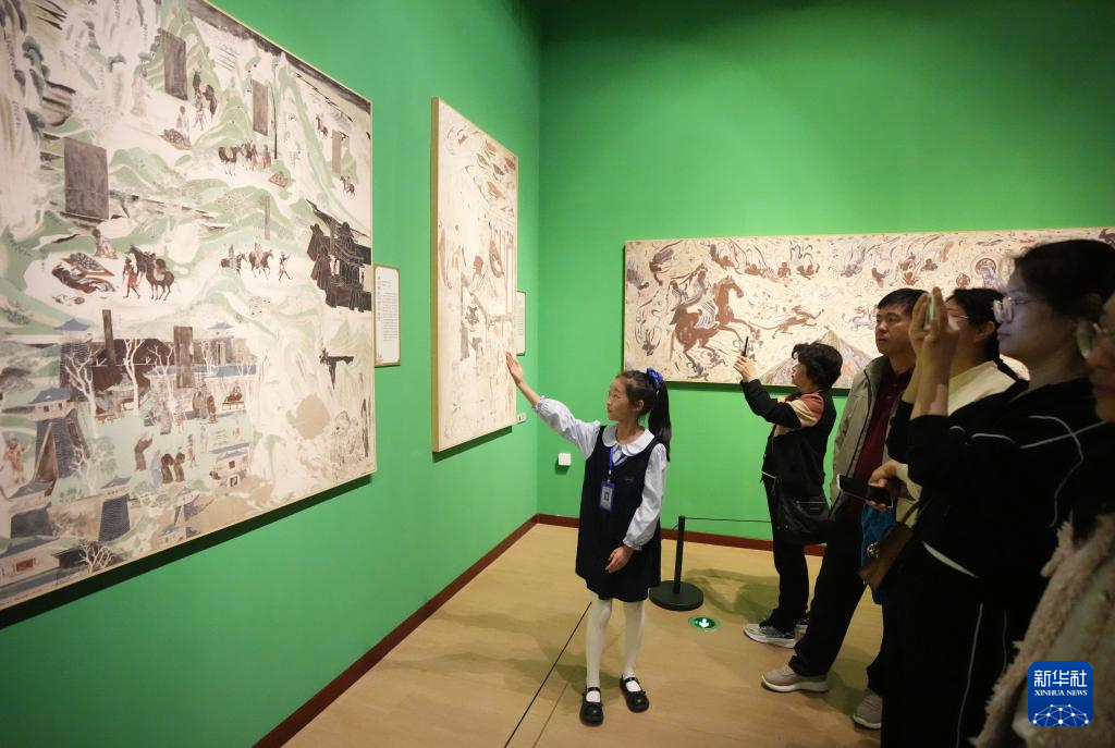 5月18日,在遼寧省博物館“山海有情·大漠鳴沙—在遼寧遇見敦煌”敦煌文化特展上,來自沈陽市渾南區第二小學的小學生為參觀者進行講解。