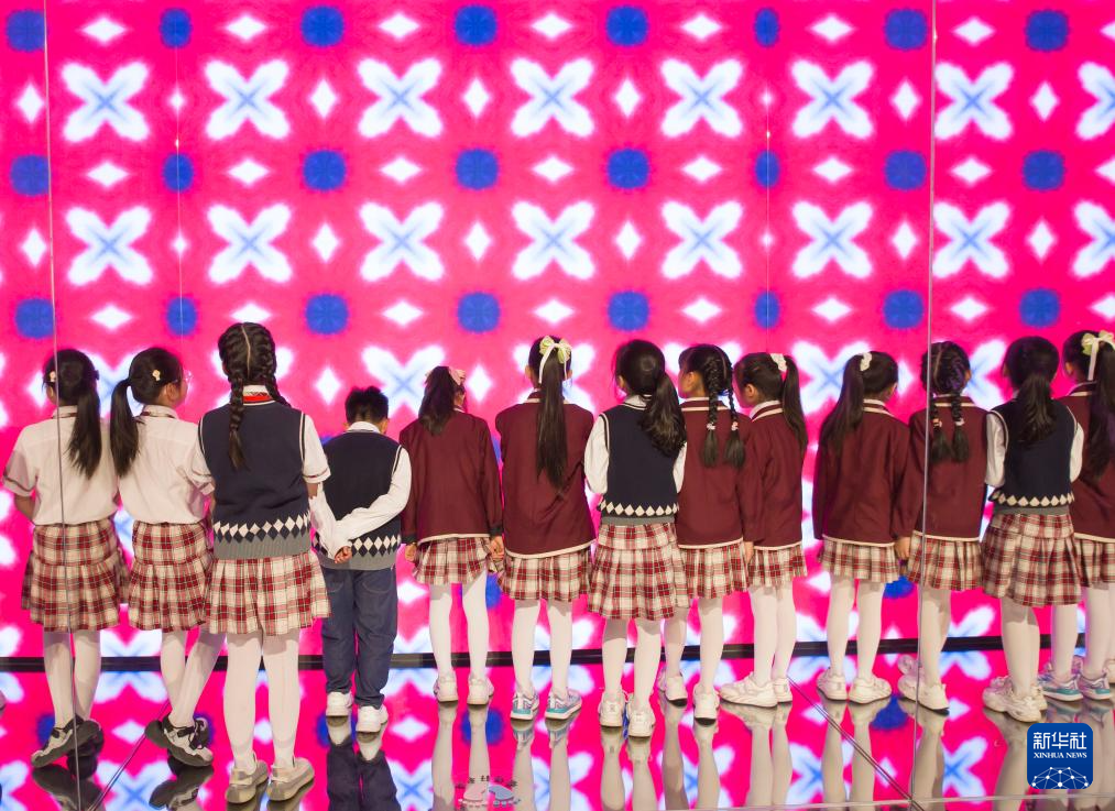 5月18日,在江蘇省南通扎染博物館,海安經濟開發區實驗小學的學生在參觀。